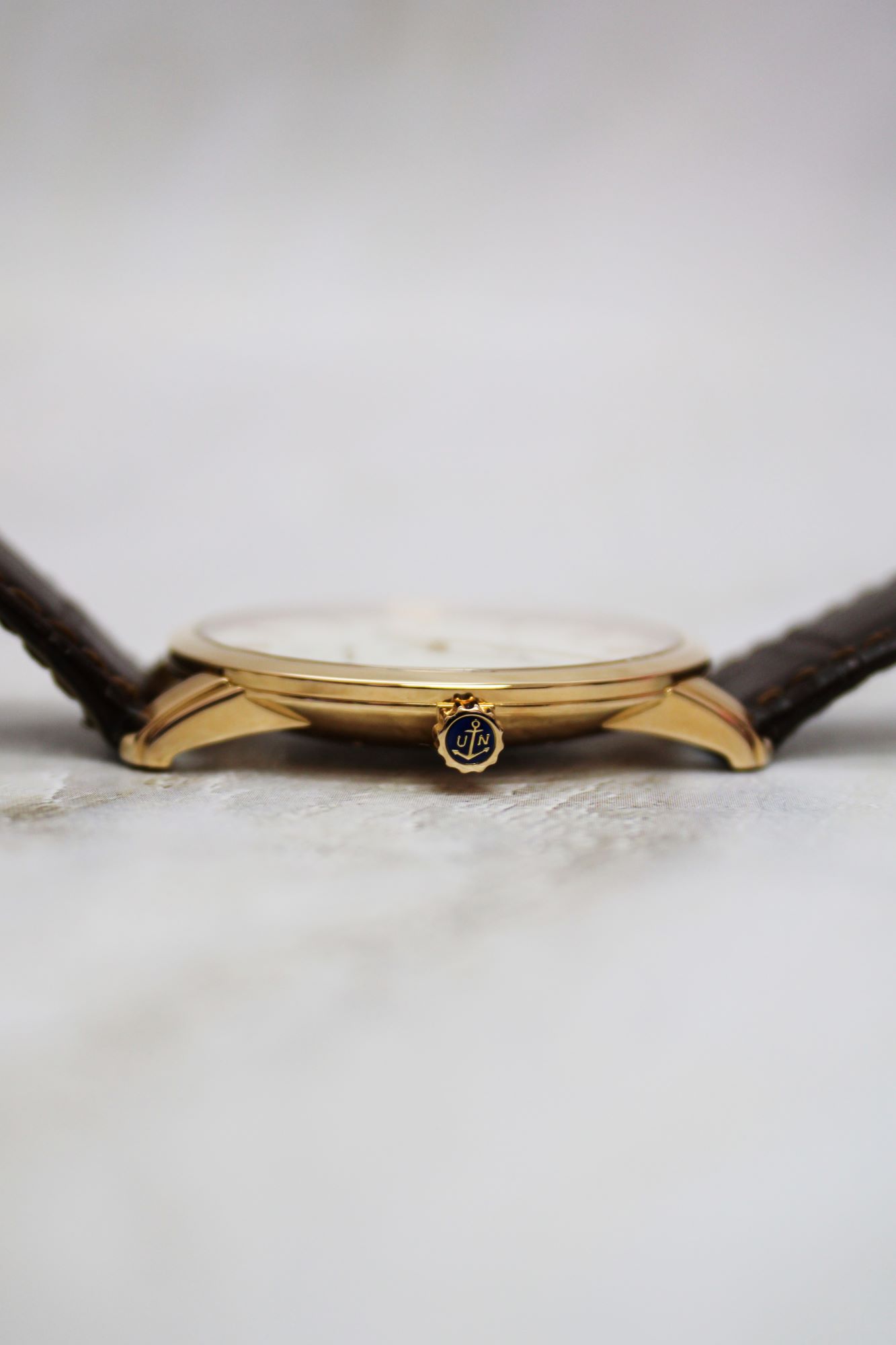 StrapBrown alligator strap, original, signed ‘Ulysse Nardin’, pin buckle in 18k rose gold with ‘UN sea anchor’ logo stamped
