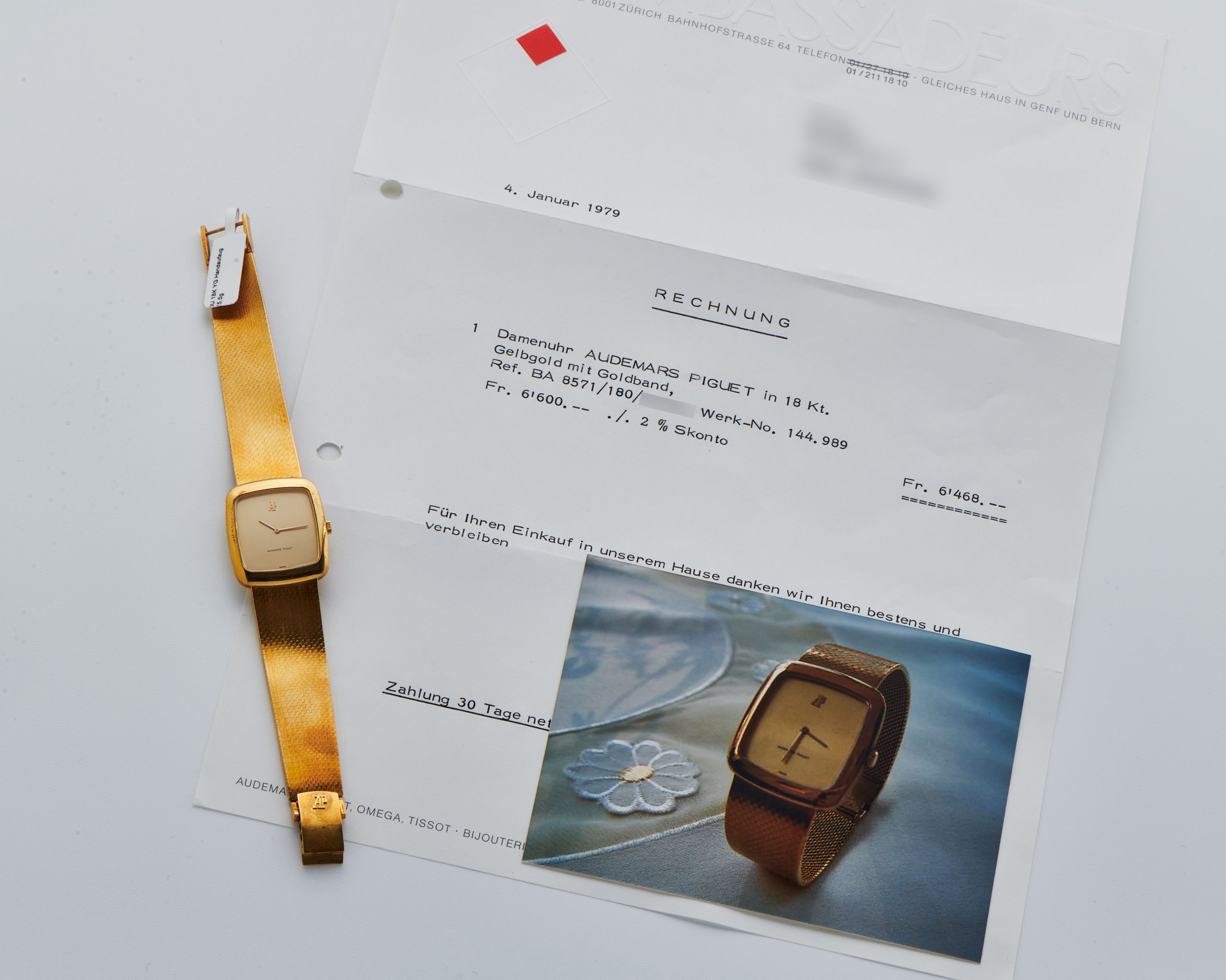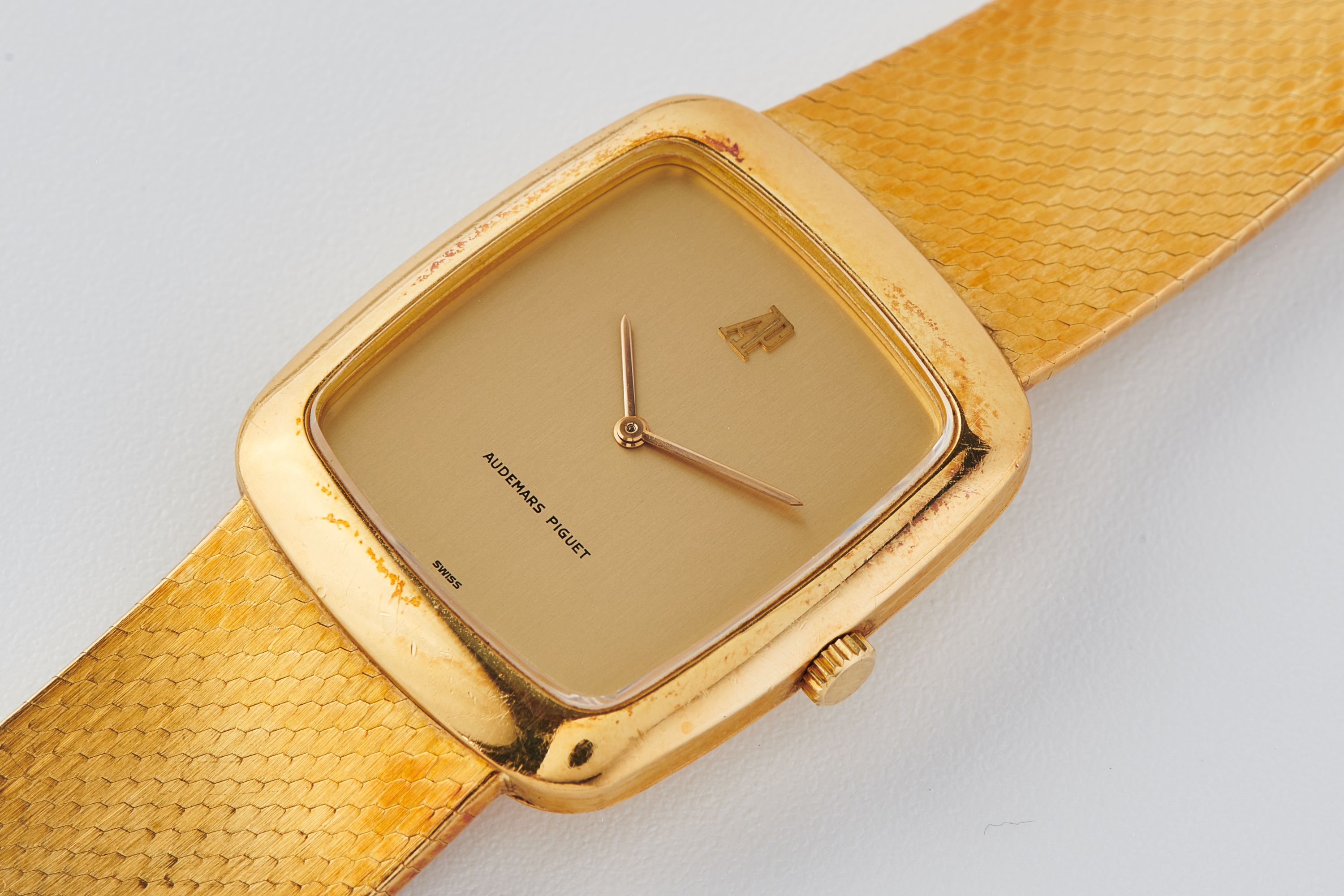 DialGold dial with gold hour and minute hands, signed 'Audemars Piguet' at 6 o'clock, applied 'AP' logo at 12 o'clock