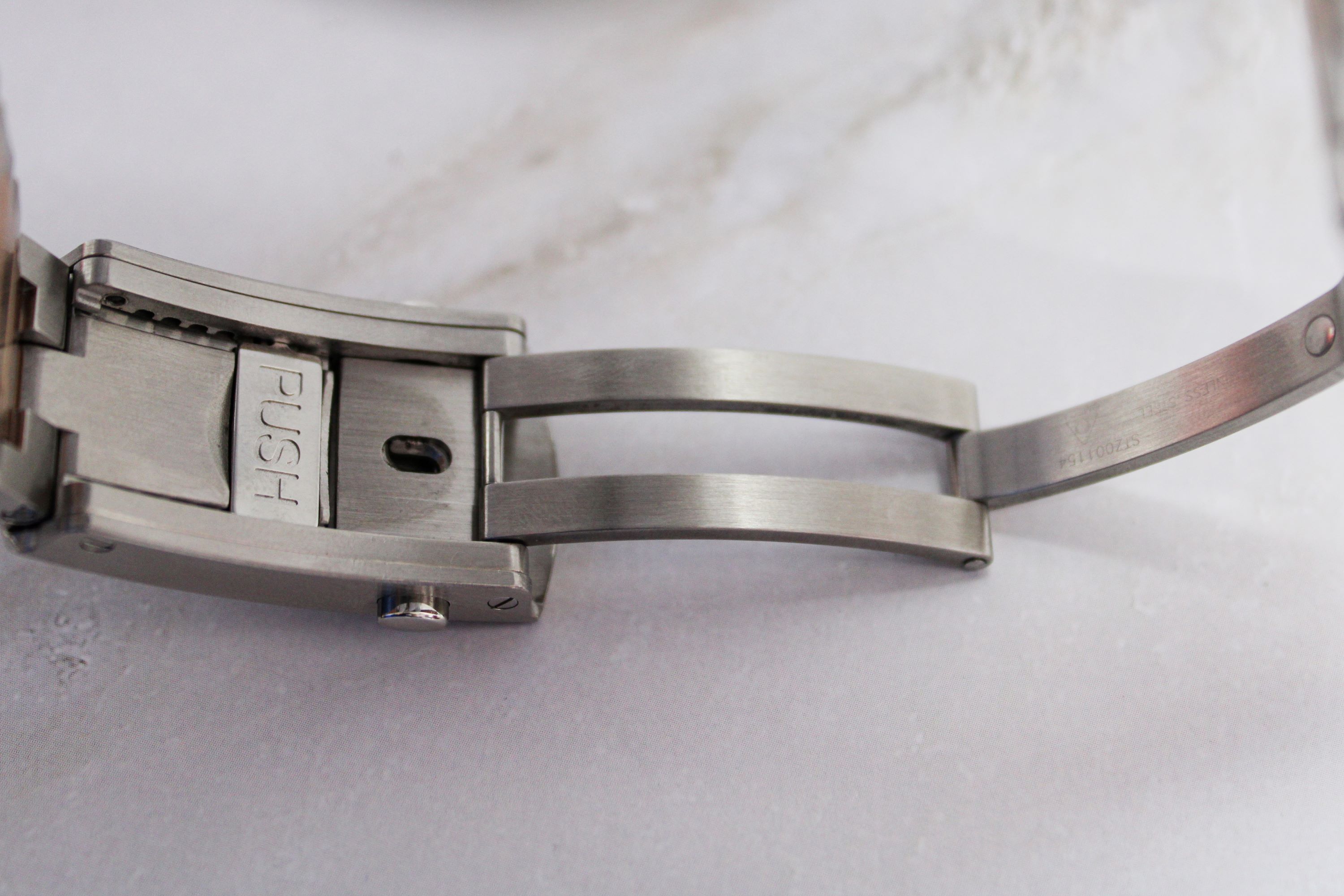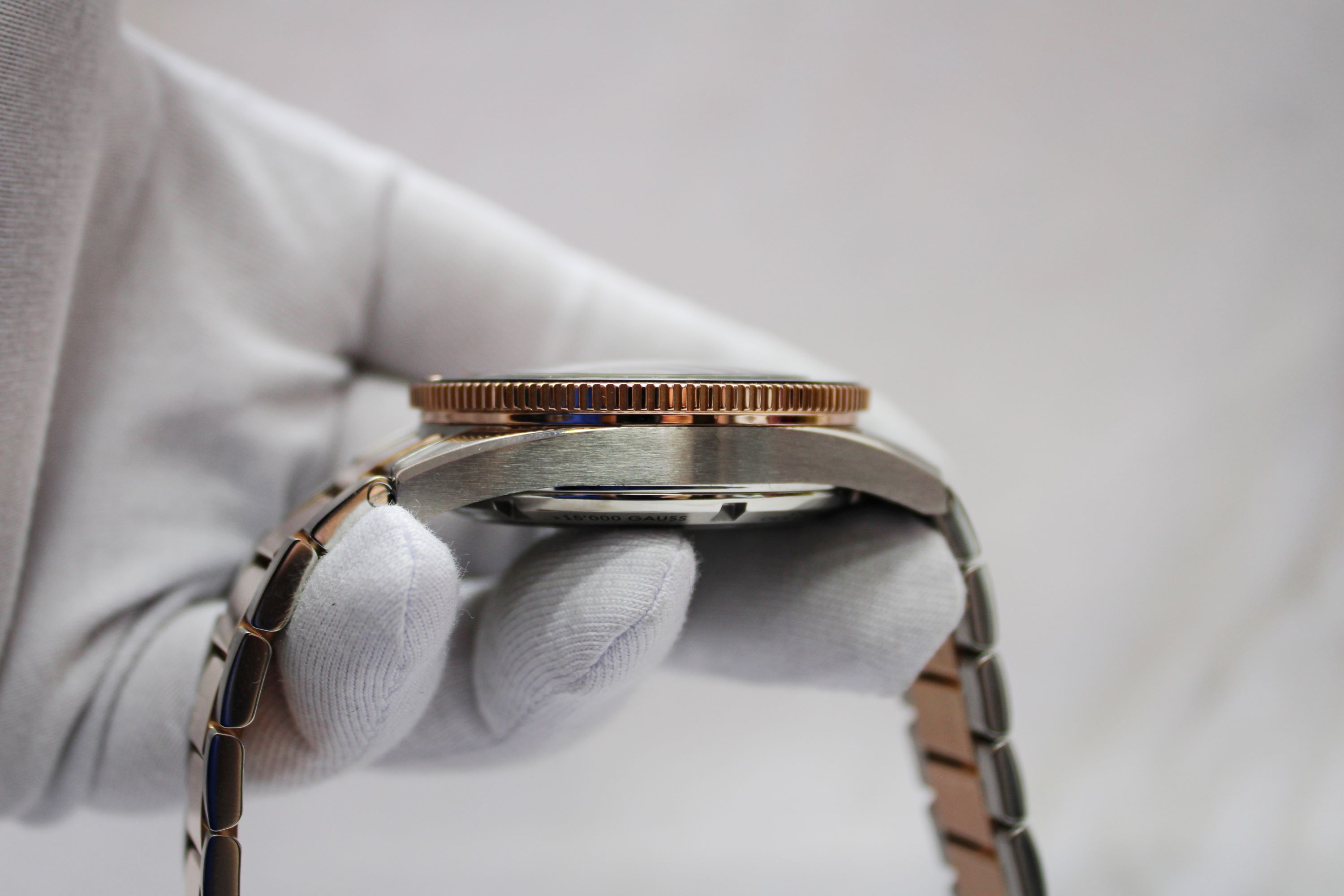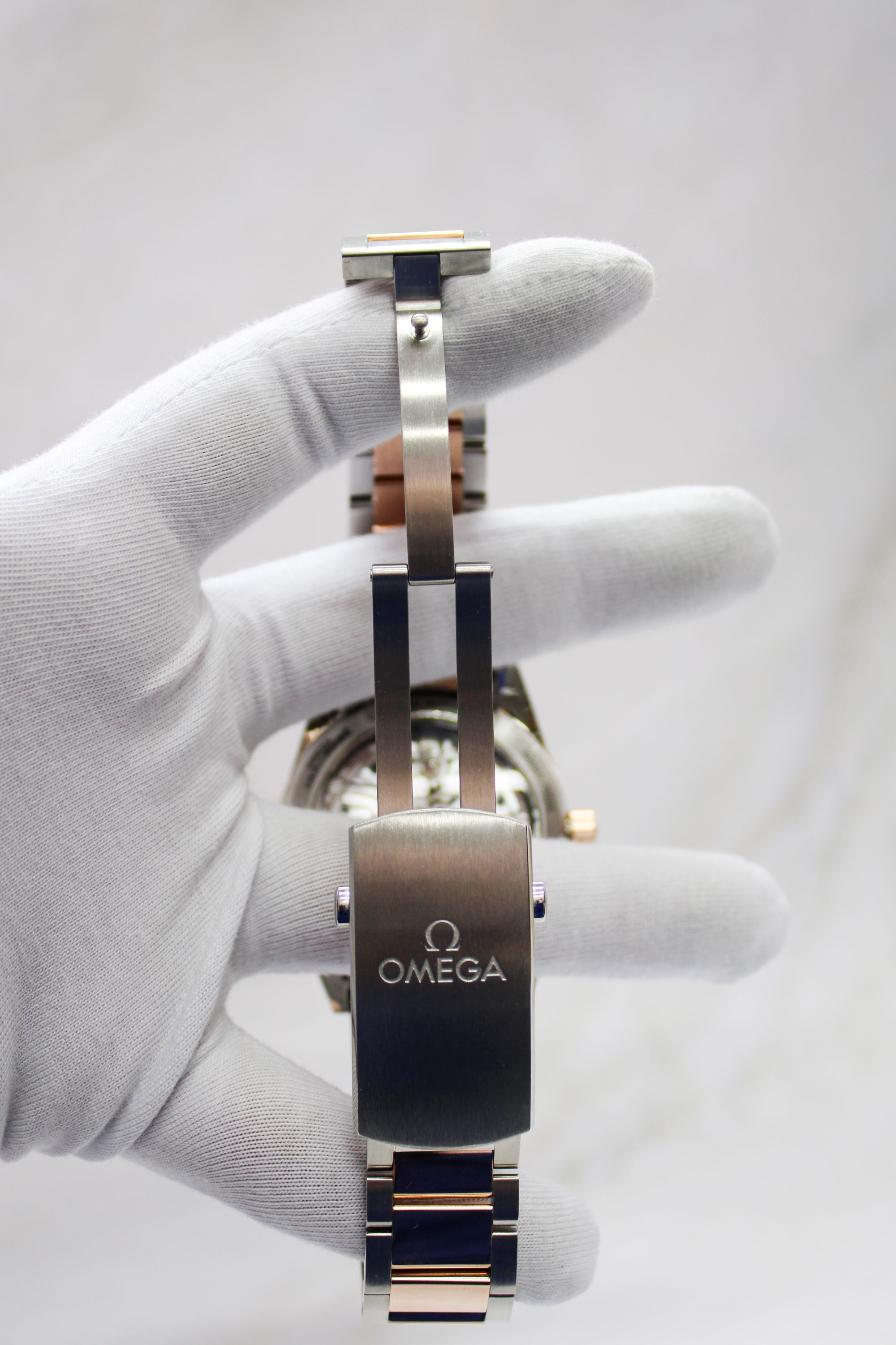 BraceletOmega Seamaster bracelet in stainless steel, brushed and polished, with central links in 18k rose Sedna gold, polished, double folding clasp with bracelet length adjustment mechanism and “Omega with omega Greek letter” logo engraved