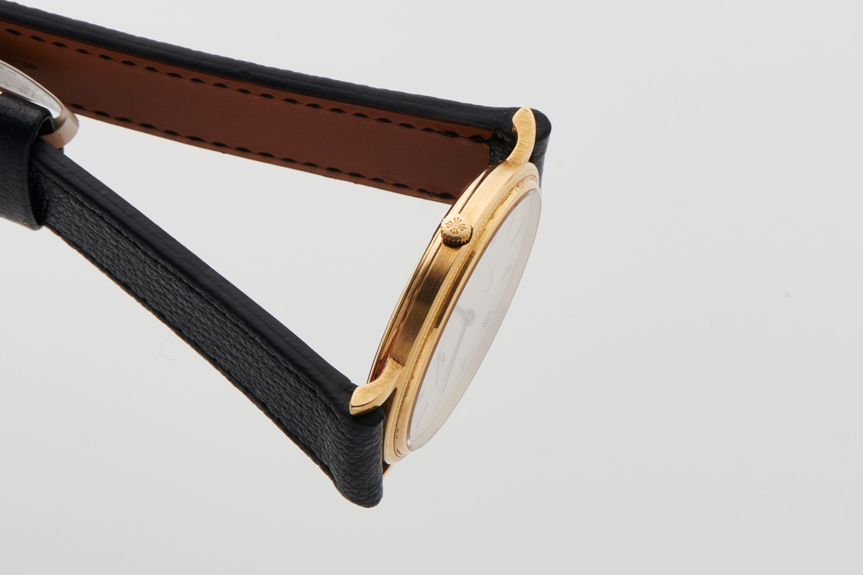 CaseRound case in 18k yellow gold with hobnail bezel, crown with Calatrava cross at 3 o'clock